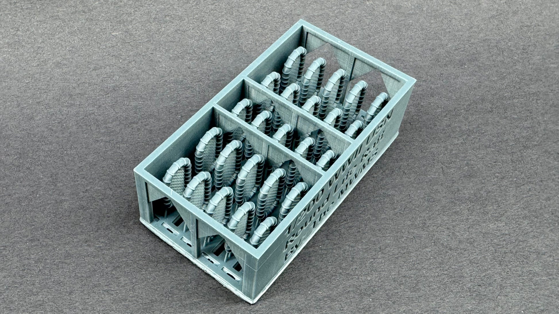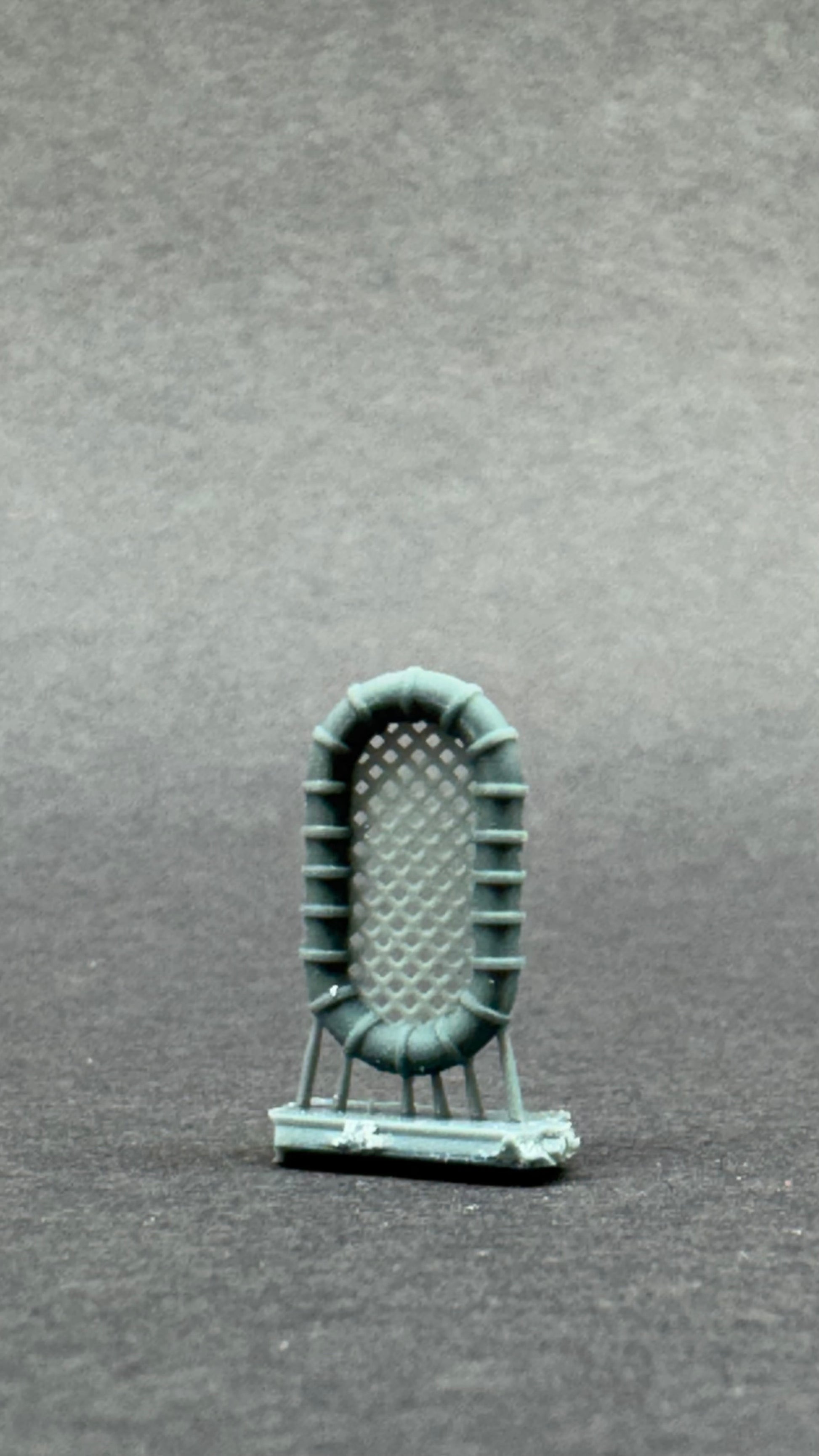 The standard kit supplied life rafts are filled in the netting area resulting in a disappointing appearance. Removing the centers and adding PE nets is very time consuming and difficult. These 3D-Printed rafts solve all of those problems. Designed to be removed from the bundle in side-by-side rows, they are then simple to paint and pop right off the supports with ease. Touch up the tiny support areas and it is ready to install.